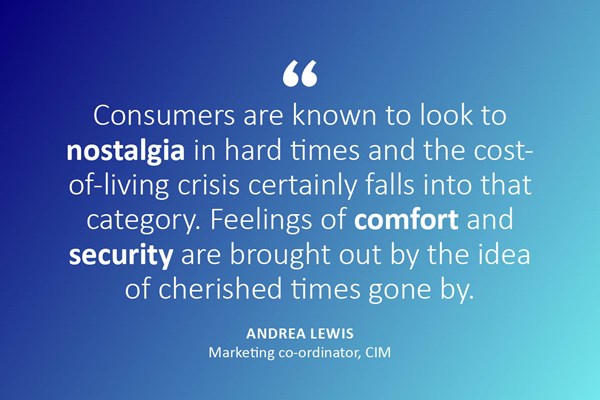 Consumers are known to look to nostalgia in hard times and the cost-of-living crisis certainly falls into that category. Feelings of comfort and security are brought out by the idea of cherished times gone by.