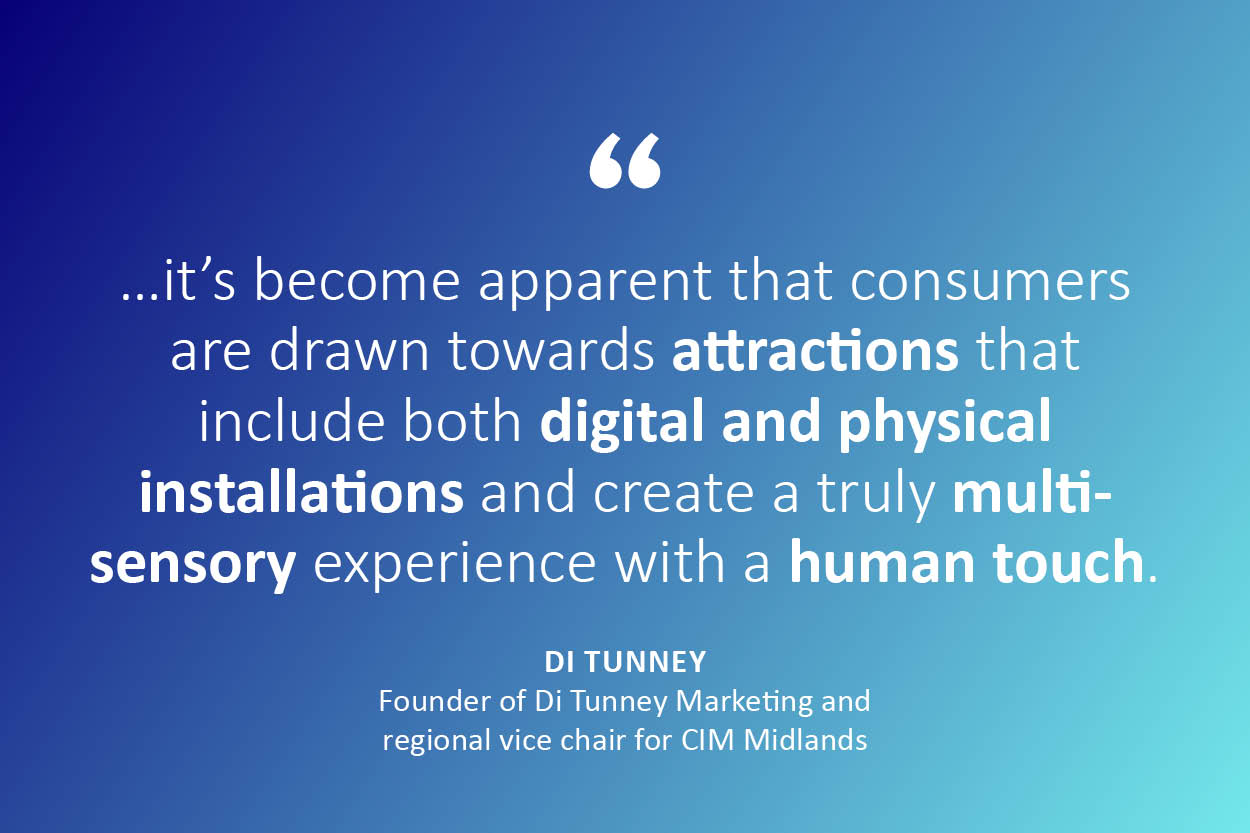 Di Tunney tells us “In these days of rapidly advancing technology we tend to think of immersive experiences being purely about stepping into virtual worlds, but it’s become apparent that consumers are drawn towards attractions that include both digital and physical installations and create a truly multi-sensory experience with a human touch”.