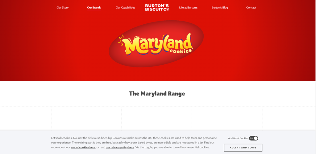 But it doesn't have to be. And what better place to find a creative cookie banner than on a cookie retailer's website? This example from Maryland Cookies is light-hearted and funny yet still fills its legal obligation by linking to crucial information in a user-friendly and on-brand manner.