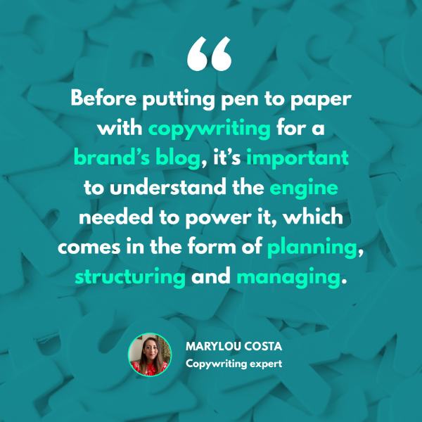 Before putting pen to paper with copywriting for a brand’s blog, it’s important to understand the engine needed to power it, which comes in the form of planning, structuring and managing.