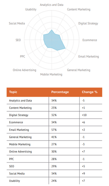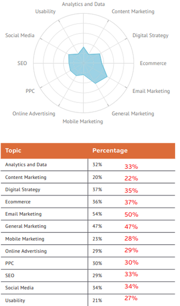 CIM course director Daniel Rowles, CEO of Target Internet, warns against it. “The benchmark includes a wide range of different agency types, and specialist digital agencies actually saw improvements in the majority of disciplines.” It might not be that knowledge is stagnating, rather that it is now distributed in varying levels as agencies become more specialised to deliver on client needs. If this is influencing the Agency sector, it will have to be something that other industries will need to pay close attention to.