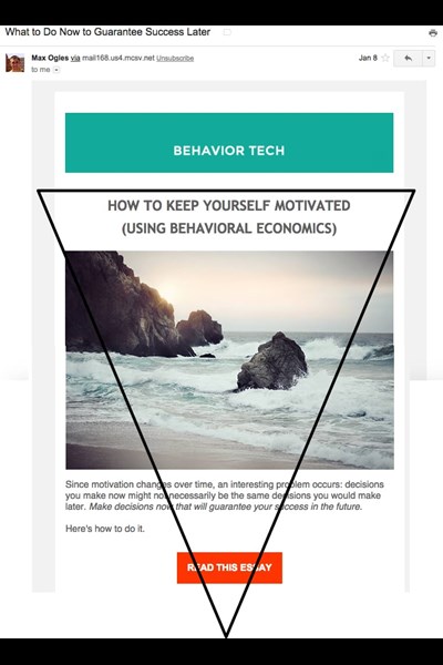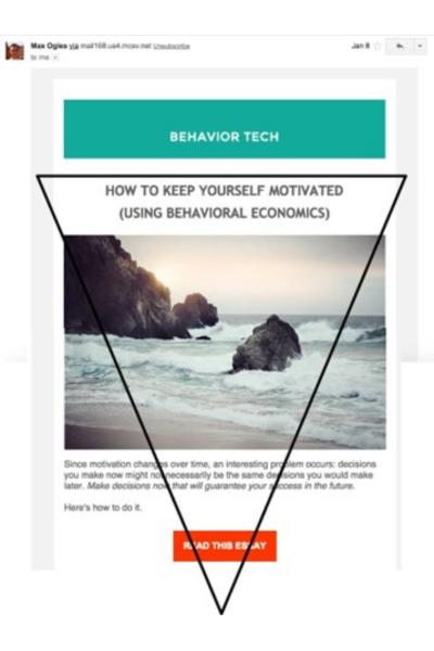 CIM course director Gavin Llewellyn recommended a useful tool when designing your layout. The inverted triangle is a helpful guide when designing content. Lead people from the headline to the main message and then to the call to action: