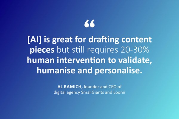 The results are impressive - kind of (we'll come back to that), so how might that impact marketers, or anyone involved in content creation, for that matter? According to Al Ramich, founder and CEO of digital agency SmallGiants and Loomi, an AI business that builds AI-powered personal assistants, saving on time and resources is the most significant advantage right now.