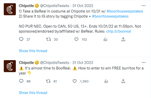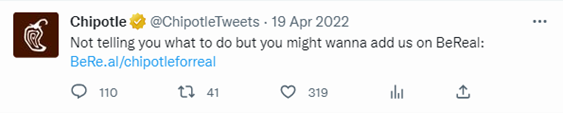 Chipotle joined the app in April 2022 and has been capitalising on the fast-moving content to hold competitions, giveaways and build excitement and anticipation on their other social accounts.