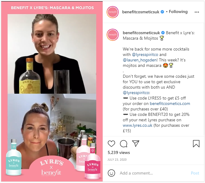 “We're working with small, like minded brands, who share similar values and personality. If you look at Benefit, we have a similar demographic that is into looking and feeling their best. It was a massively impactful, extremely cost effective content partnership,” explains O’Keeffe. Reaching Benefit’s eight million Instagram followers helped boost Lyre’s own following to the 18,000 it now has, she adds.