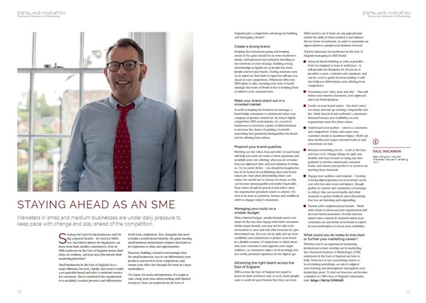 Our CIM East of England, vice chairman, Paul Mackman recently spoke to East Anglia in Business about how marketers can gain a competitive advantage by managing an SME brand.