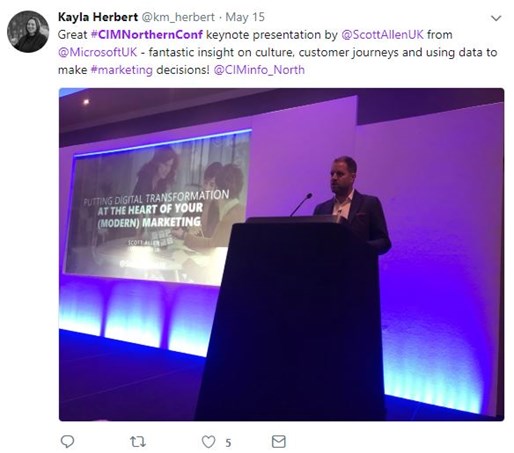 Scott Allen, CMO of Microsoft UK and CIM member began proceedings with a thought provoking presentation on ‘digital transformation’, focusing on how he and his team have learnt to adapt and capitalise on the new digital climate. Delegates drawn from across both agency and in-house and from the public, private and not-for-profit sectors were challenged in streamed workshops.
