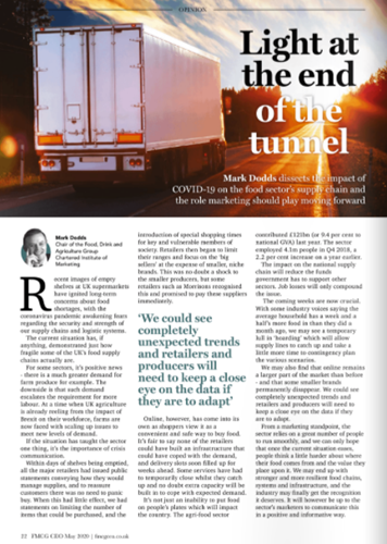 Our chair of CIM's Food, Drink and Agriculture sector interest group, Mark Dodds, recently spoke to FMCG CEO Magazine, about the impact of COVID-19 on the food sector's supply chain and the role marketing should play moving forward. For the full article, click on the below to the pdf document of FMCG CEO Magazine (pg.22)